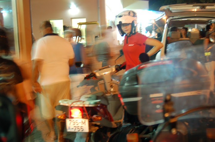 załatwi a zaraz po niej podjeżdża starsza para na skuterze, a za nimi busem